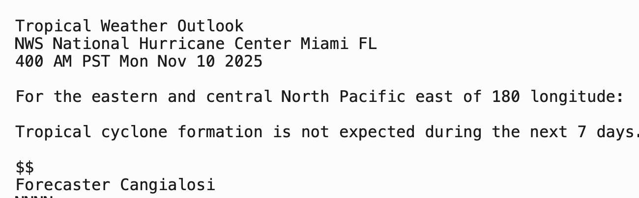 | Tropical Weather Outlook 500 AM PDT Mon 10 Nov 2025 1005 UTC Mon 10 Nov 2025 | |