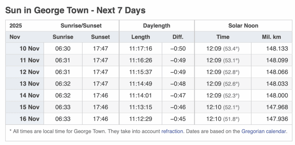 SUN IN GEORGE TOWN – NEXT 7 DAYS