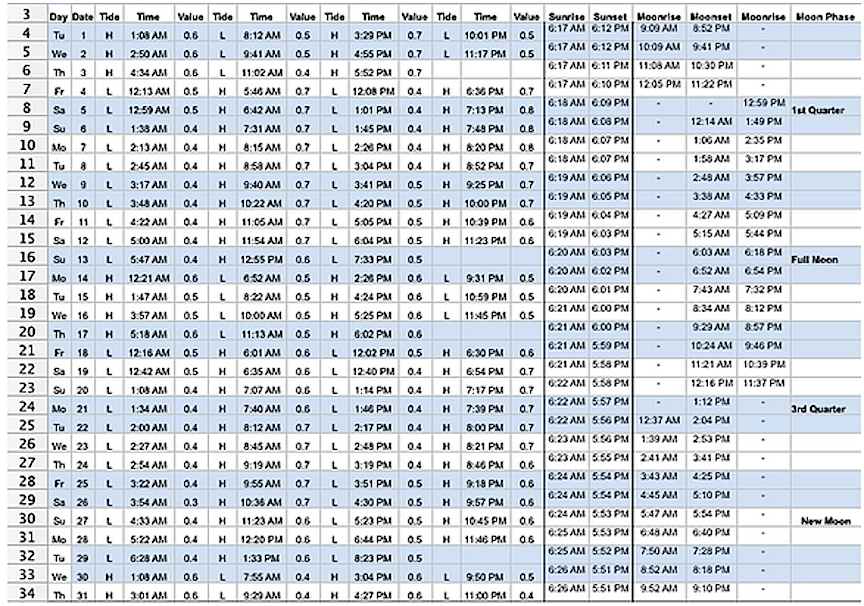 OCT TIDES AND MOON