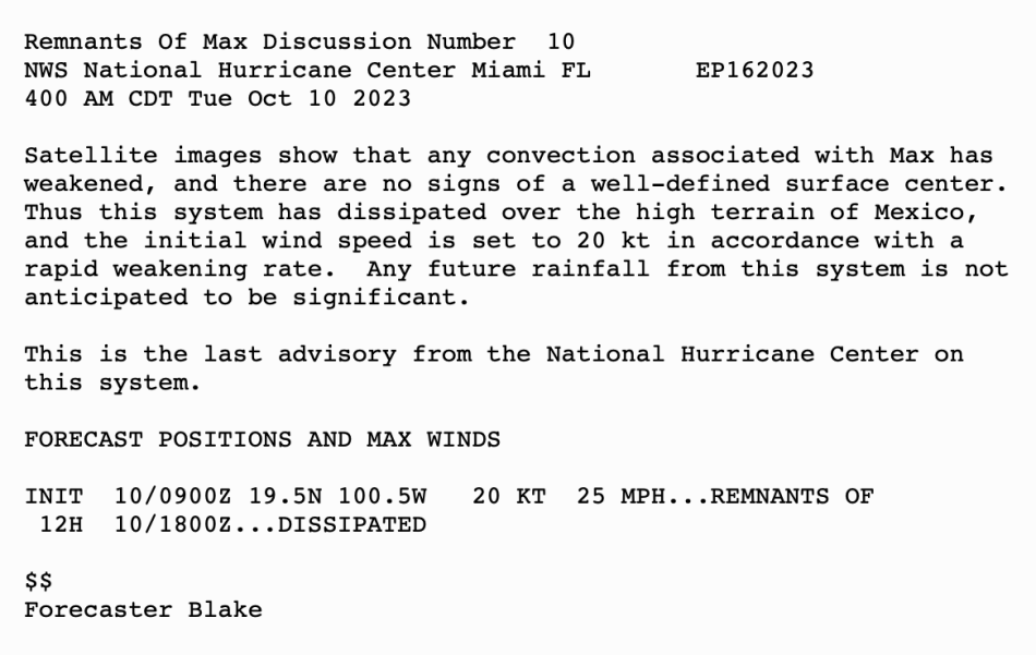 MAX DISSIPATES OVER MEXICO… …THIS IS THE LAST ADVISORY
