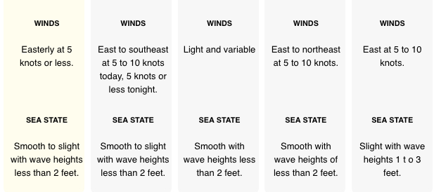 Winds: Today: ENE 5-10 mph Tonight: E 5-10 mph