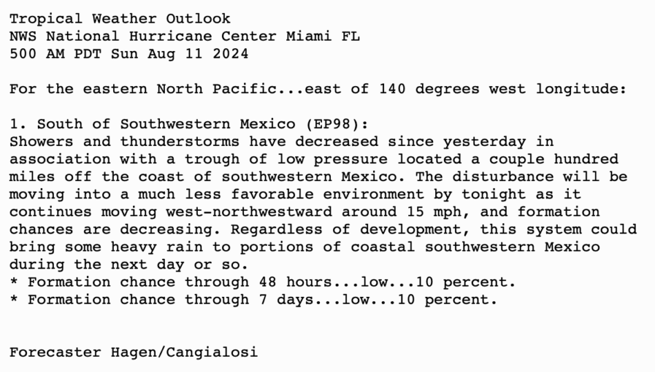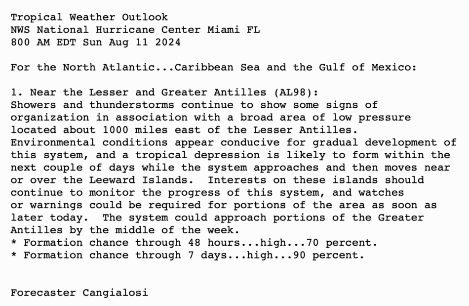 | Tropical Weather Outlook Text | Tropical Weather Discussion |