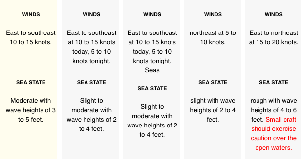 Winds: Today: E 10-20 mph Tonight: E 10-15 mph