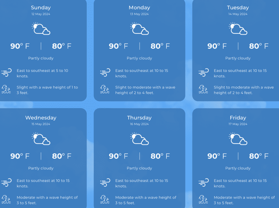IMPORTANT NOTICEThe times reflected in the tidal table for Grand Cayman are predictions valid as references for sports fishing in areas near the coast of Grand Cayman. THEY ARE NOT SUITABLE FOR NAVIGATION. Remember that to practice any activity at sea like diving, windsurfing and fishing from a boat or underwater fishing should always be consulted with the official tide tables of the port of Grand Cayman.