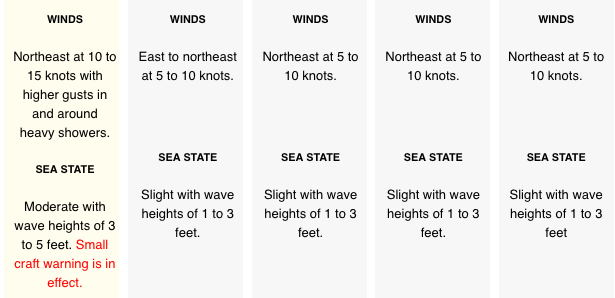 Winds: Today ENE 10-20 mph Tonight E 10-15 mph