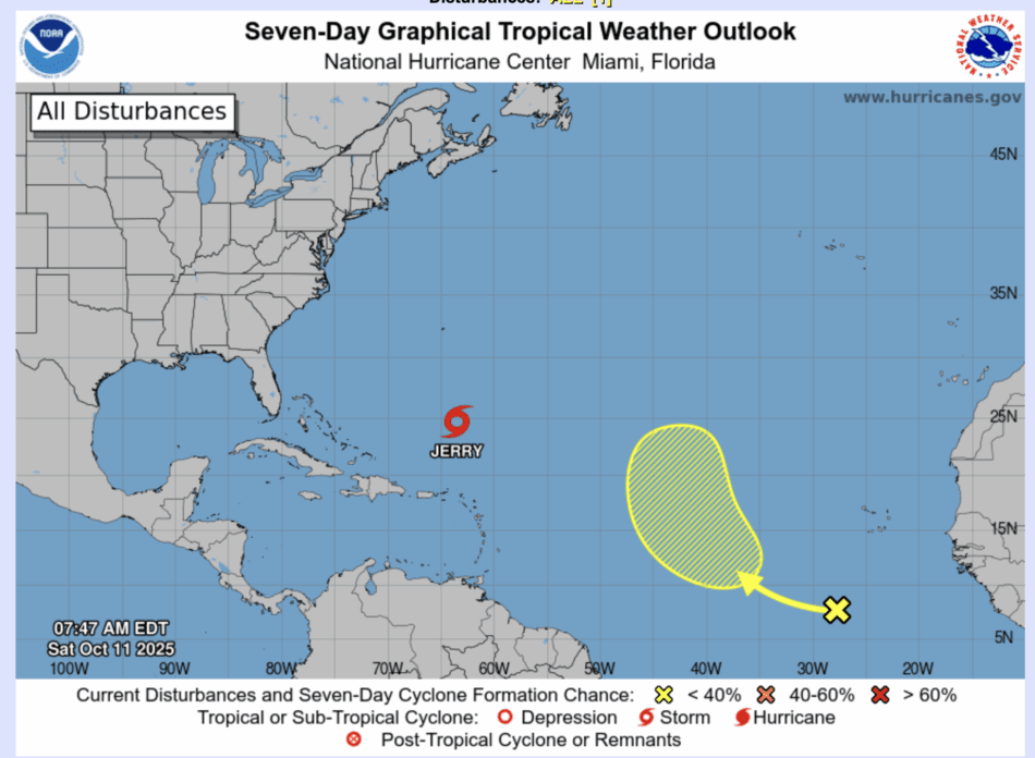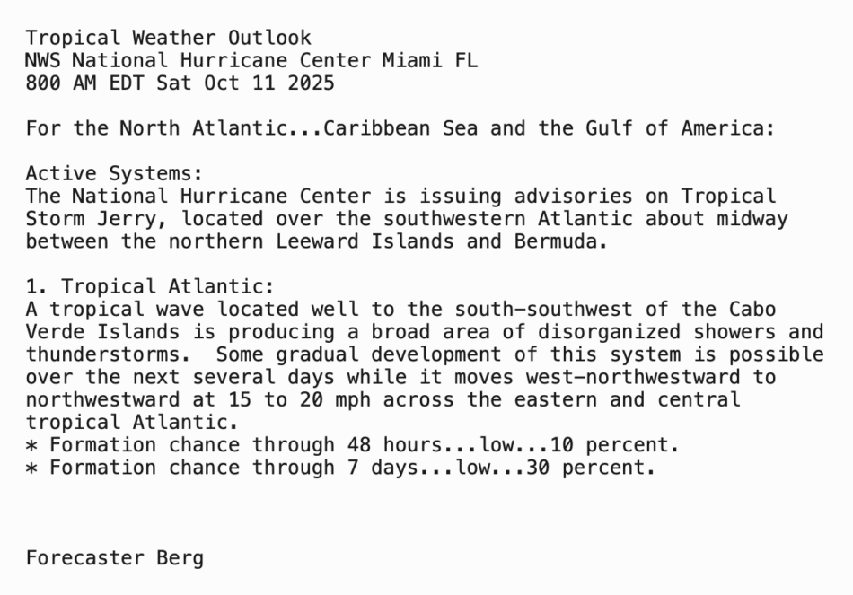 | Tropical Weather Outlook 800 AM EDT Sat 11 Oct 2025 1205 UTC Sat 11 Oct 2025 | |