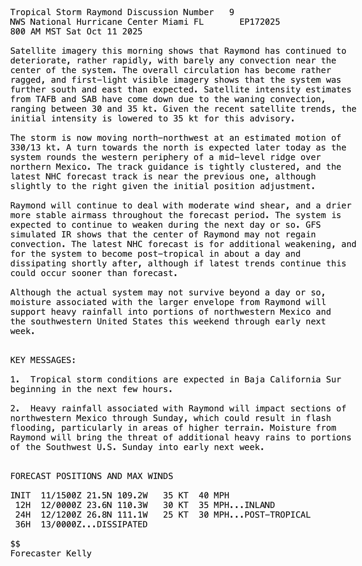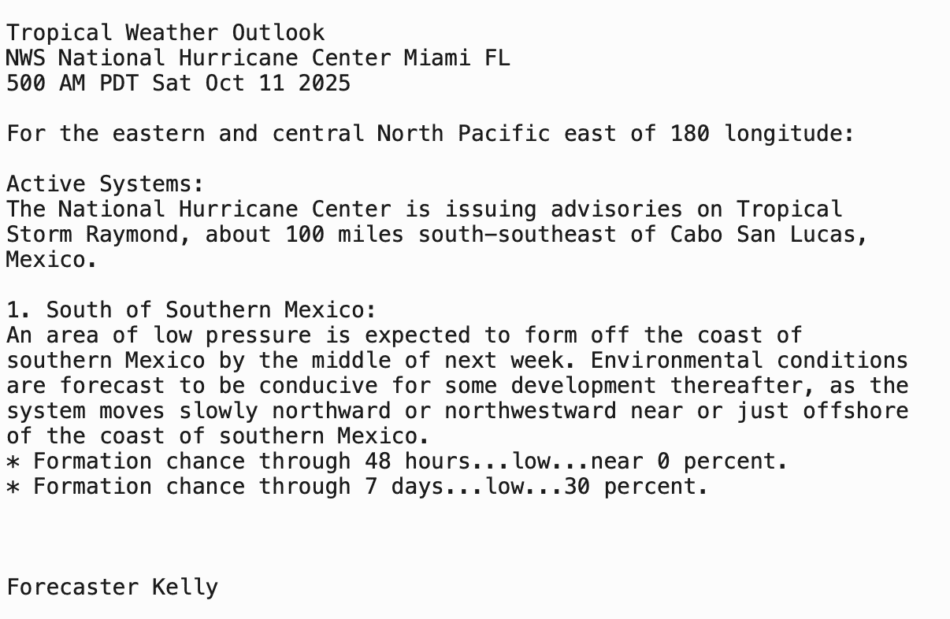 | Tropical Weather Outlook 500 AM PDT Sat 11 Nov 2025 1005 UTC Sat 11 Nov 2025 | |