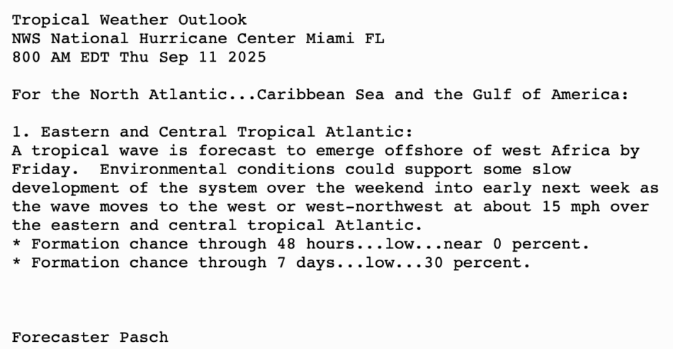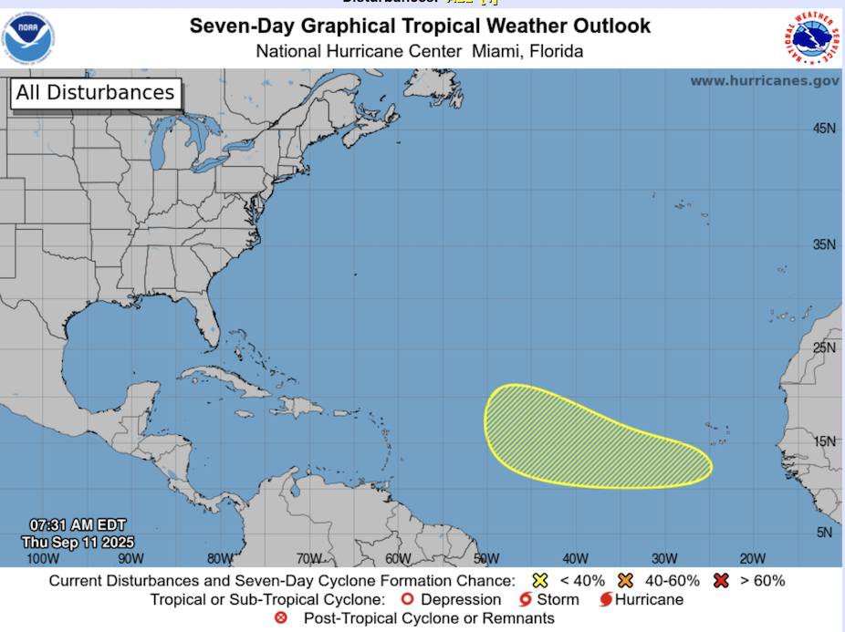 | Tropical Weather Outlook 800 AM EDT Thu 11 Sep 2025 1205 UTC Thu 11 Sep 2025 | |
