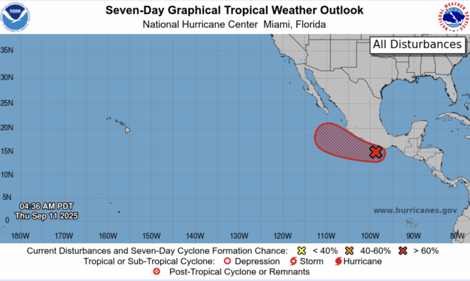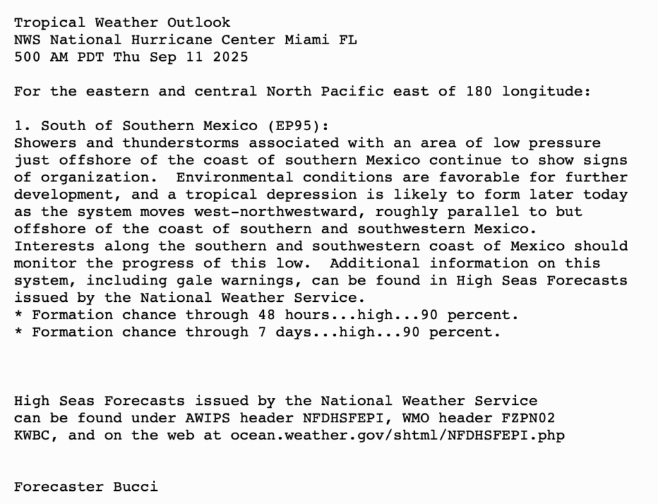 | Tropical Weather Outlook 500 AM PDT Thu 11 Sep 2025 1005 UTC Thu 11 Sep 2025 | |