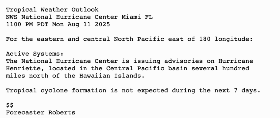 | Tropical Weather Outlook 500 AM PDT Tue 12 Aug 2025 1005 UTC Tue 12 Aug 2025 | |