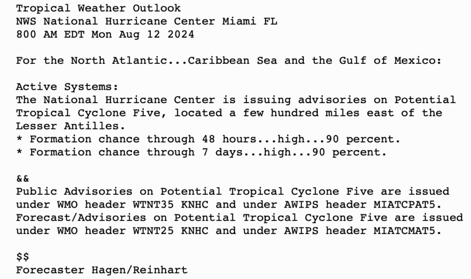 800 AM EDT Mon 12 Aug 2024