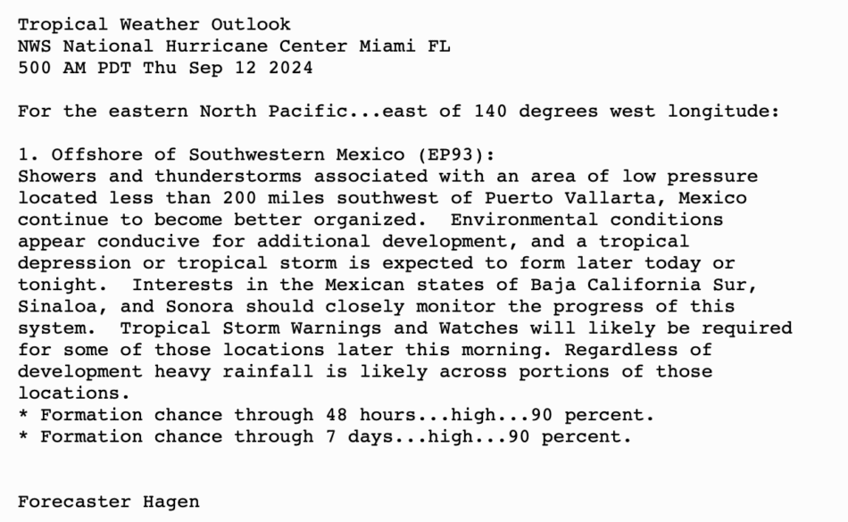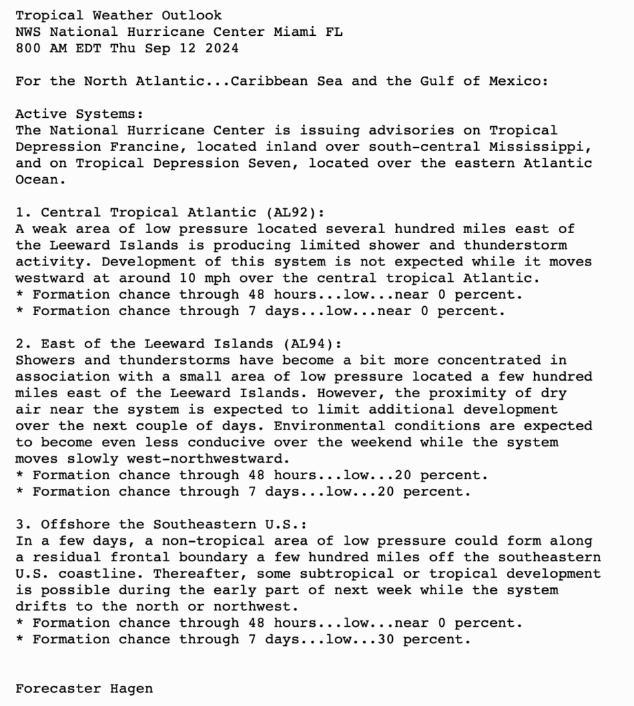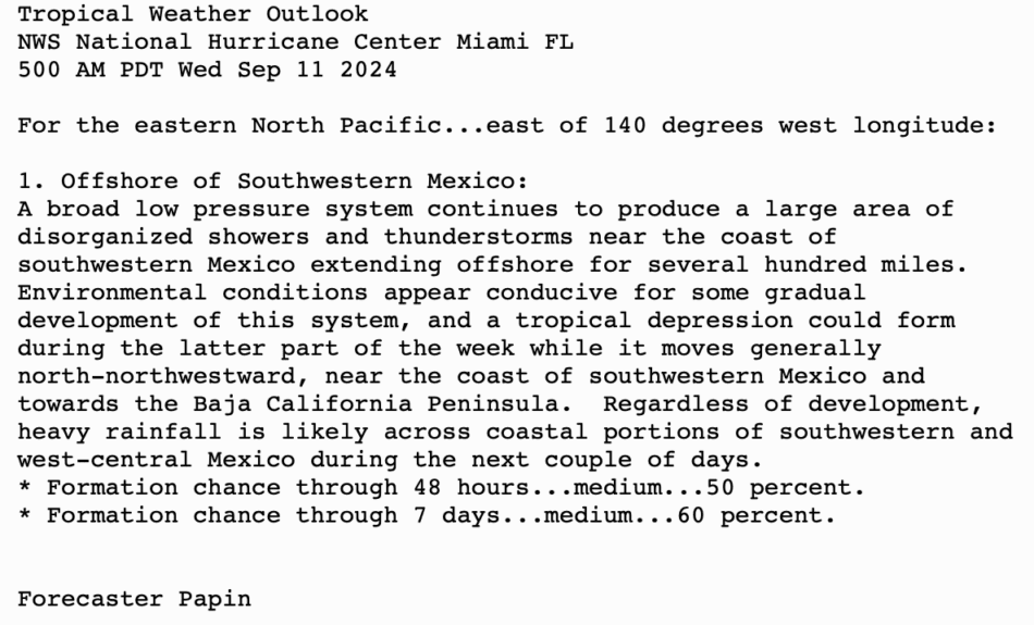 | Tropical Weather Outlook Text | Tropical Weather Discussion |