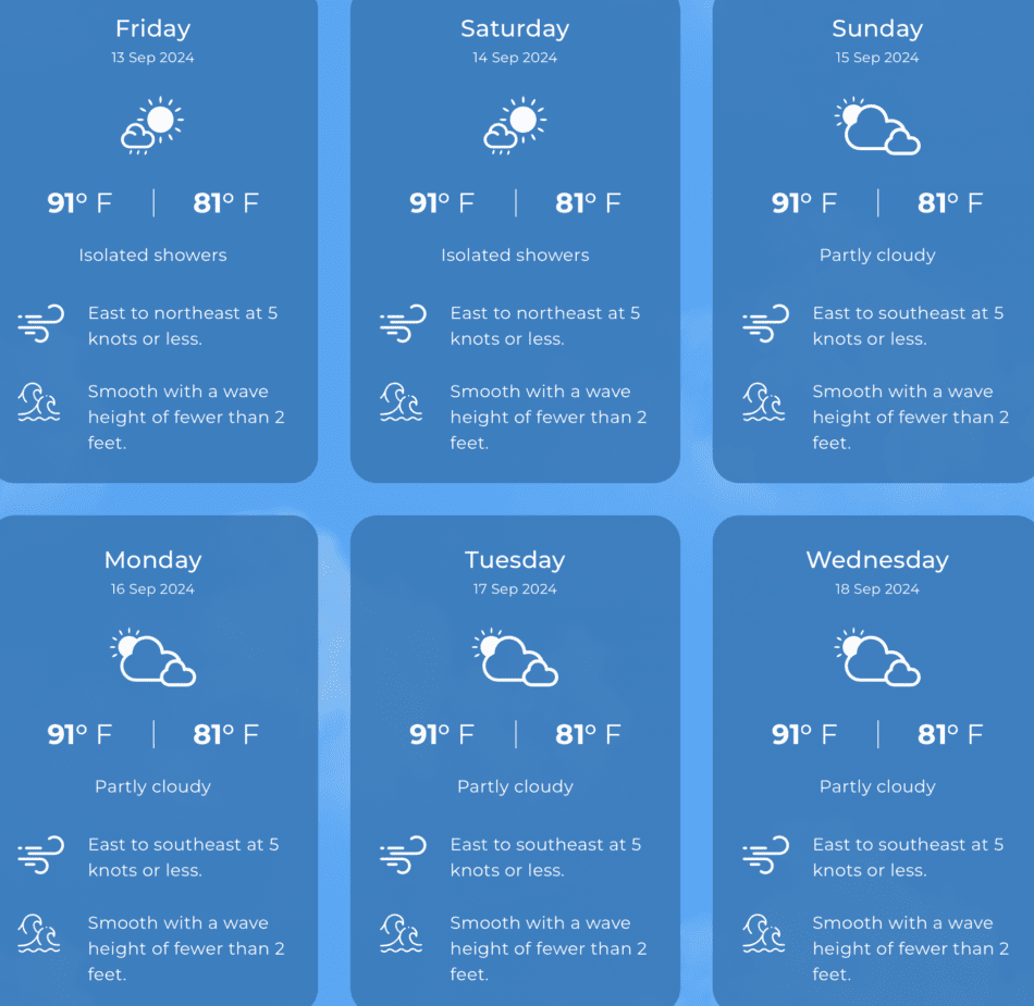 Expected temperatures: 91°F to 81°F. Yesterday: H 91.1°F L 81.3°F