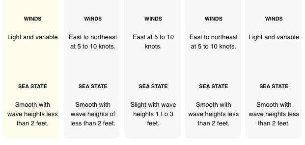 Winds: Today: SSE 5-10 mph Tonight: SSE 5-10 mph