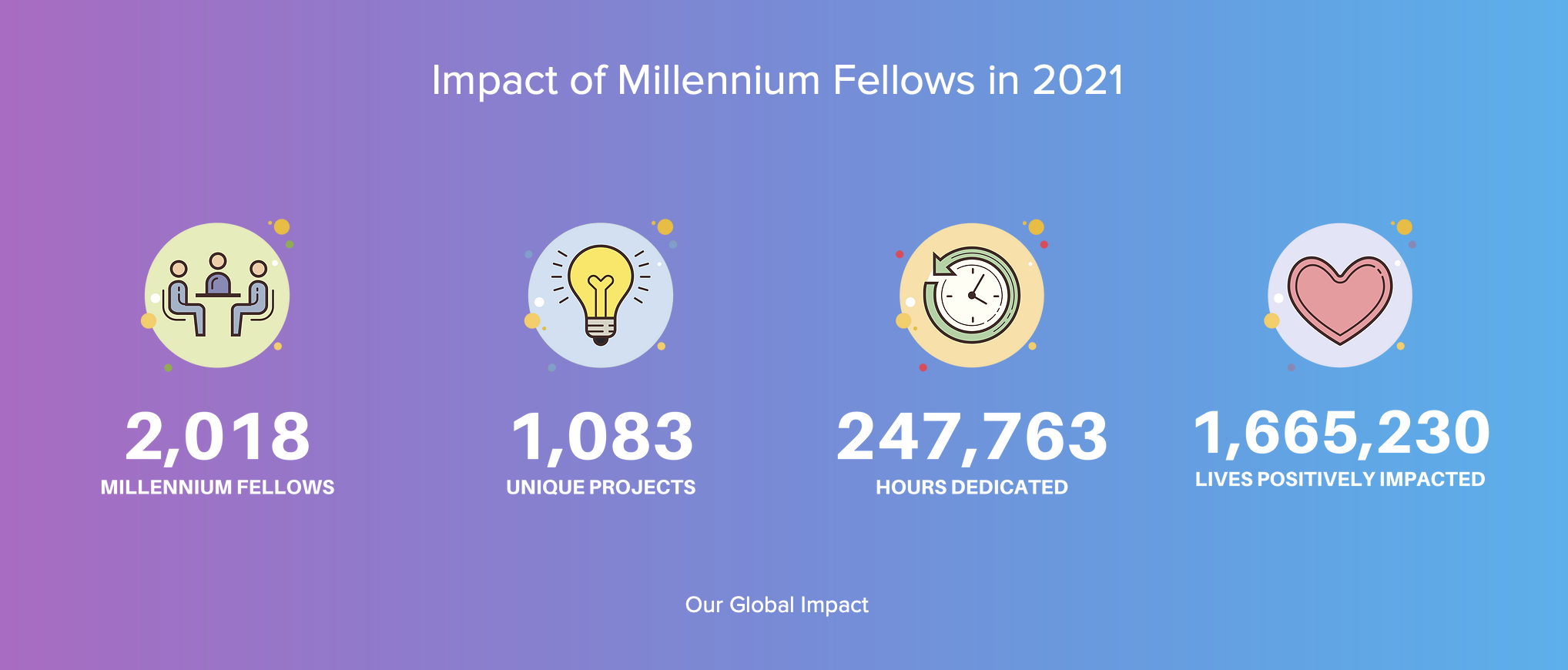 Ban Ki-moon, eighth Secretary-General of the United Nations, shared his enthusiasm for the programme, “As Millennium Fellows, we need you to lead by example—with empathy, humility, and inclusion as guiding values. You can embrace global citizenship, building a strong global network to learn from and support each other…We are all counting on you to affirm the dignity of people and our planet, now and for years to come.”