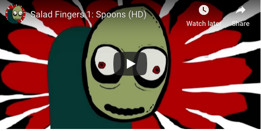 This classic series was extremely popular for its unnerving animation, spooky post-apocalyptic atmosphere, and the creepy titular character, “Salad Fingers.” In the opening episode, Salad Fingers looks for the perfect spoon to rub his fingers against in order to feel some sort of pleasure.