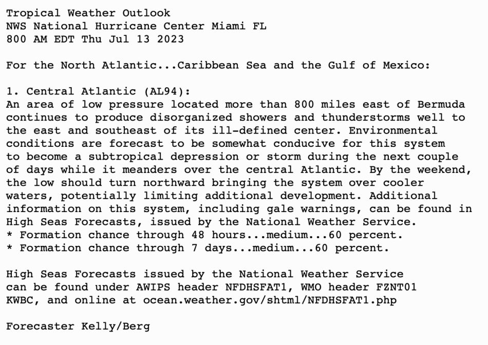 | Tropical Weather Outlook (en Español*) 800 AM EDT Thu 13 Jul 2023 | |