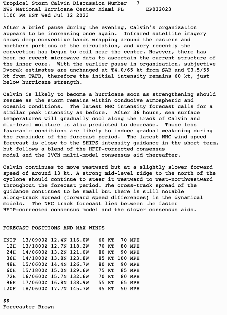 CALVIN EXPECTED TO BECOME A HURRICANE VERY SOON