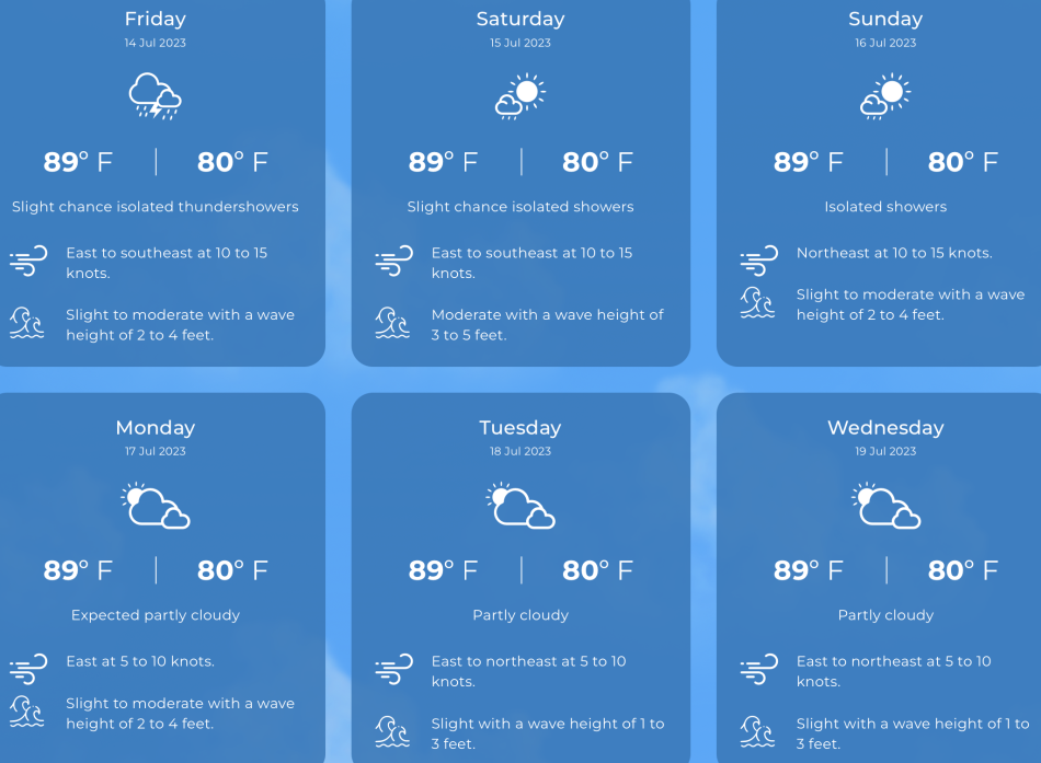 Temperatures: Yesterday – Low 78.4°F, High 89.5°F Today (Expected) – Low 78°F High 89°F