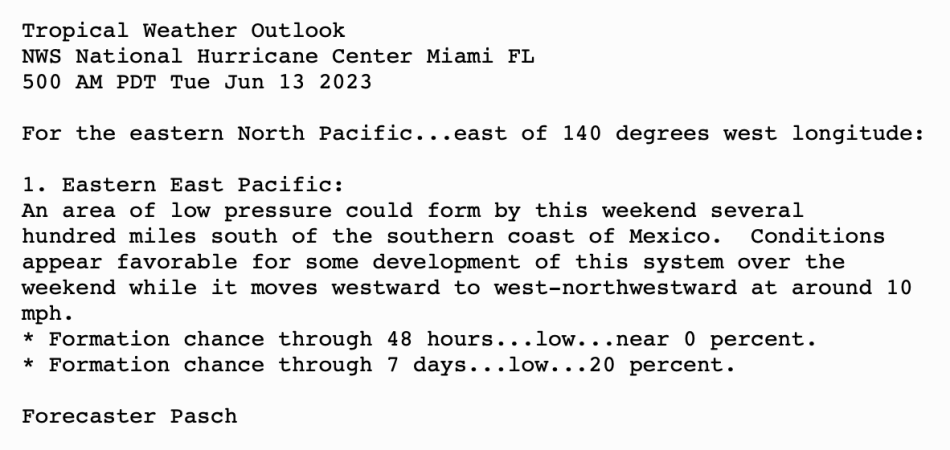 | Tropical Weather Outlook (en Español*) 800 AM EDT Tue Jun 13 2023 | |