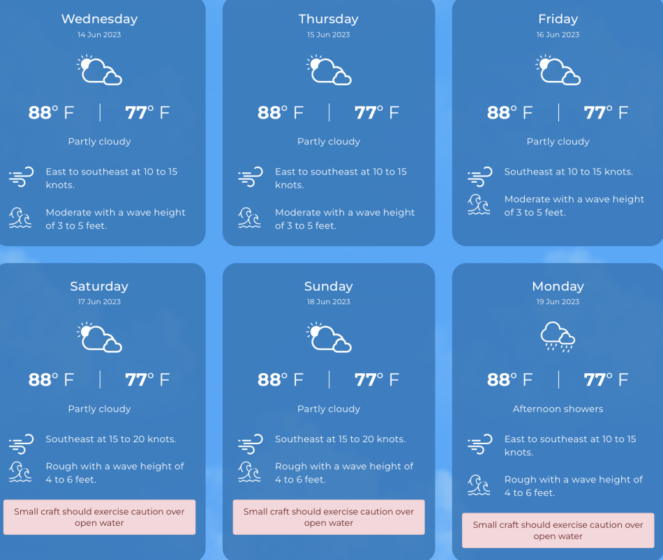 Temperatures: Yesterday – Low 76.8°F, High 88.2°F Today (Expected) – Low 77°F High 89°F