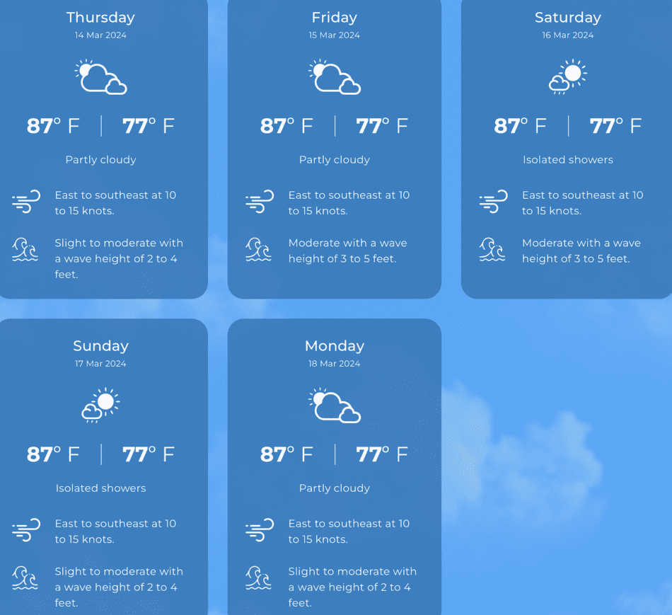 Sea: Slight to moderate with a wave height of 2 to 4 feet.