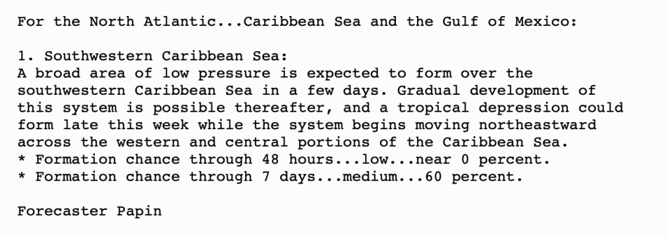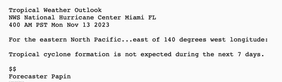 | Tropical Weather Outlook (en Español*) 8.00 AM EDT Mon 13 Nov 2023 | |