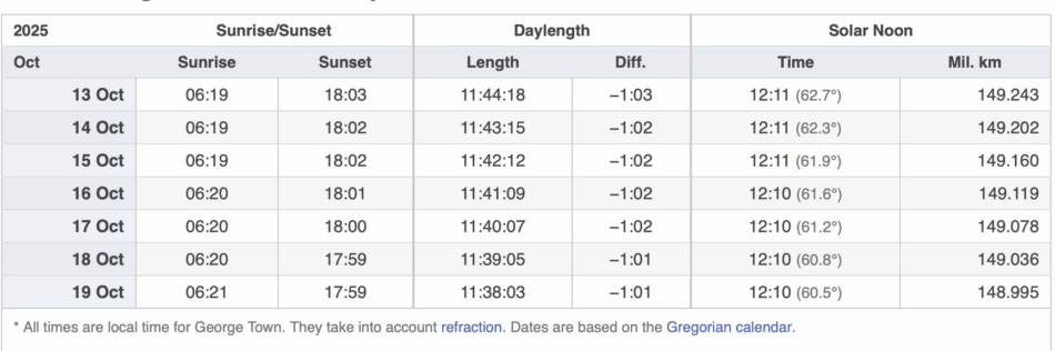 SUN IN GEORGE TOWN – NEXT 7 DAYS
