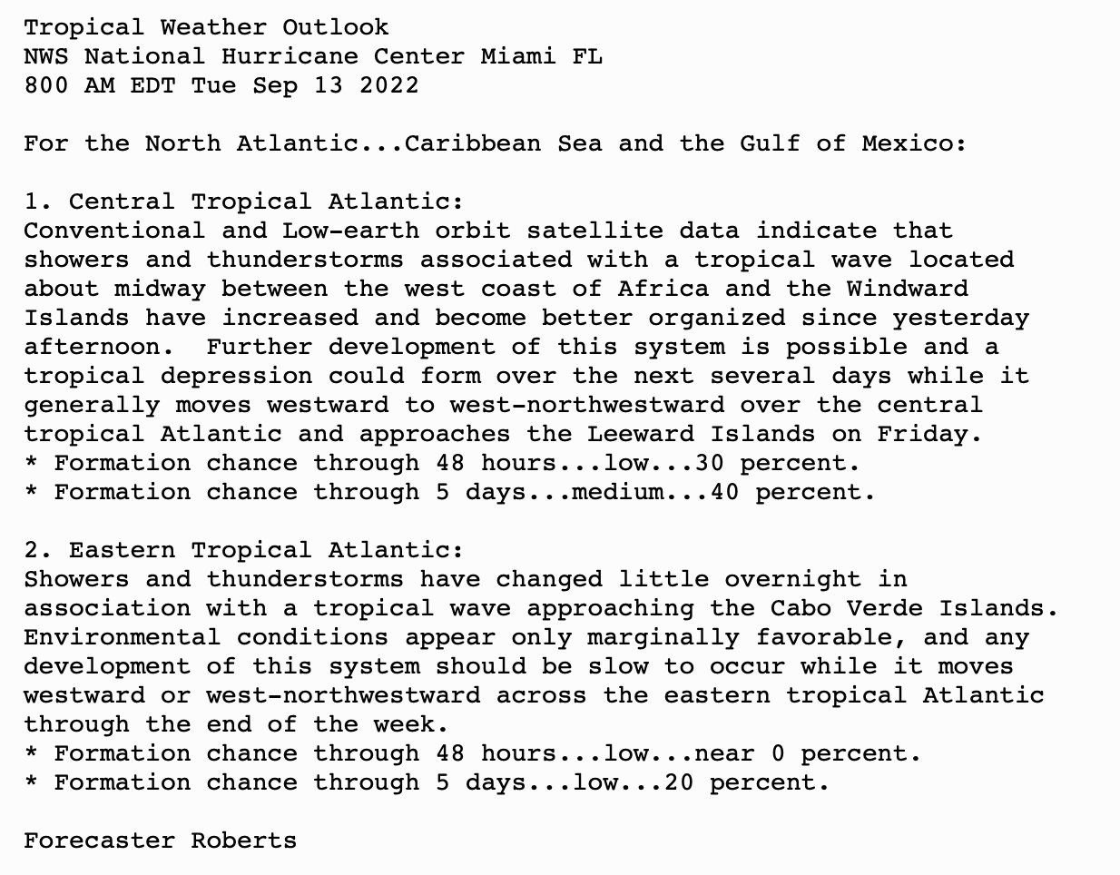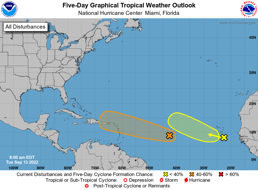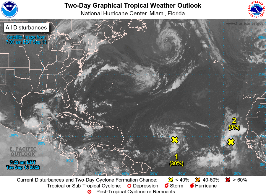 | Tropical Weather Outlook (en Español*) 800 AM EDT Tue Sep 13 2022 1205 UTC Tue Sep 13 2022 | |
