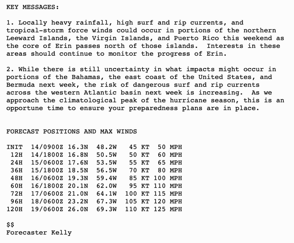 ERIN CONTINUES WESTWARD… …FORECAST TO BECOME A HURRICANE BY FRIDAY