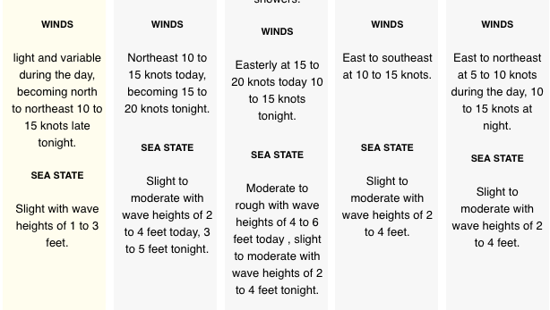 Winds: Today NNE 5-10 mph Tonight: NNE 5-10 mph