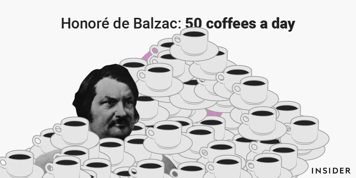 We put together a list of 14 authors and their favorite drinks, from absinthe to a gin and tonic. We even included a French author who might have been the biggest coffee addict of all time — and showed for it by publishing more than 50 books in his lifetime.