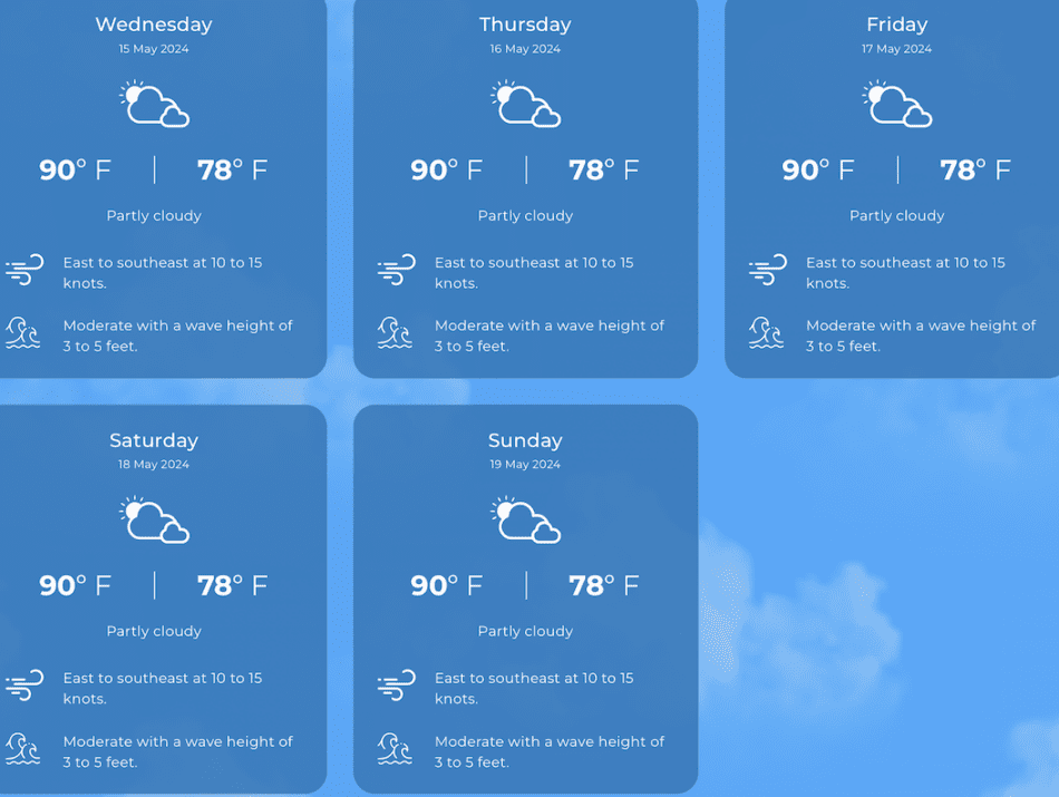 IMPORTANT NOTICEThe times reflected in the tidal table for Grand Cayman are predictions valid as references for sports fishing in areas near the coast of Grand Cayman. THEY ARE NOT SUITABLE FOR NAVIGATION. Remember that to practice any activity at sea like diving, windsurfing and fishing from a boat or underwater fishing should always be consulted with the official tide tables of the port of Grand Cayman.