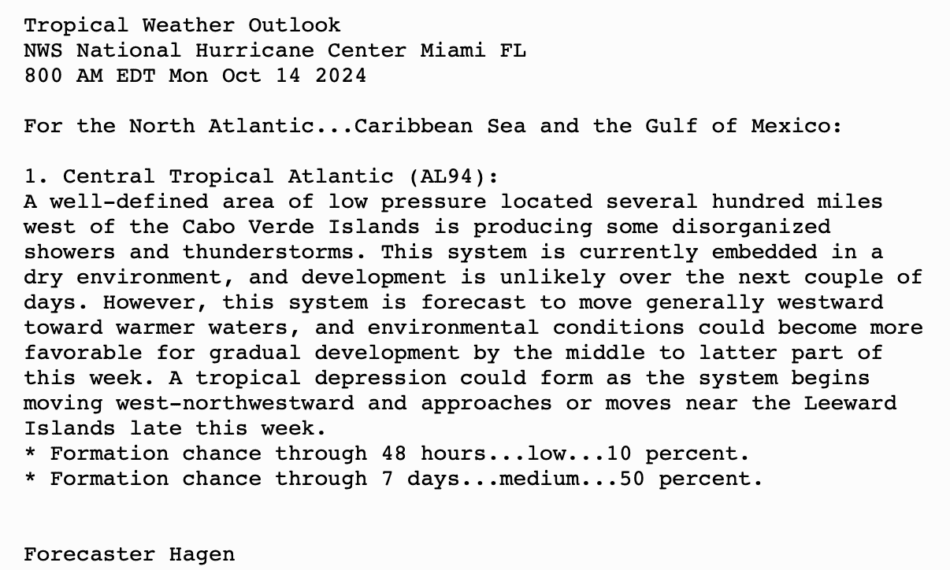 800 AM EDT Mon 14 Oct 2024