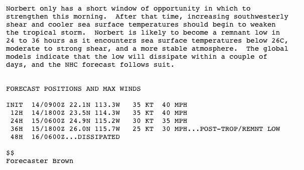 TS NORBERT MAINTAINS ITS STRENGTH FOR NOW… …EXPECTED TO BEGIN WEAKENING LATER TODAY