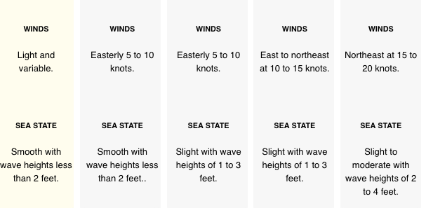 Winds: ENE 5-10 mph Tonight: E 5-10 mph,