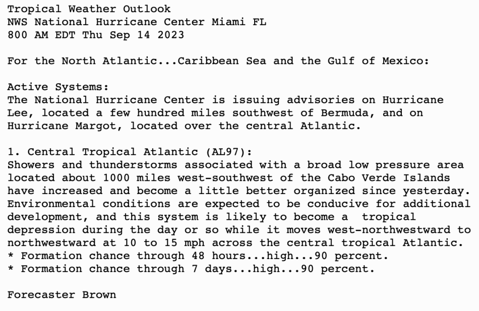 | Tropical Weather Outlook (en Español*) 800 AM EDT Thu Sep 2023 | |