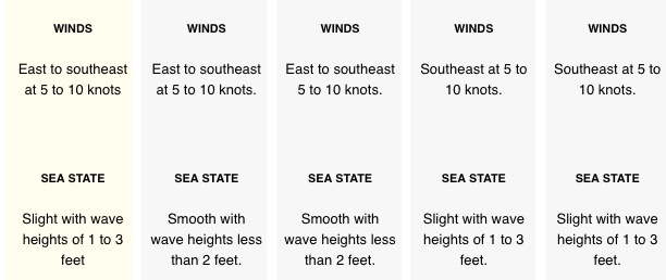 Winds: Today: SE 10-15 mph Tonight: SE 5-10 mph