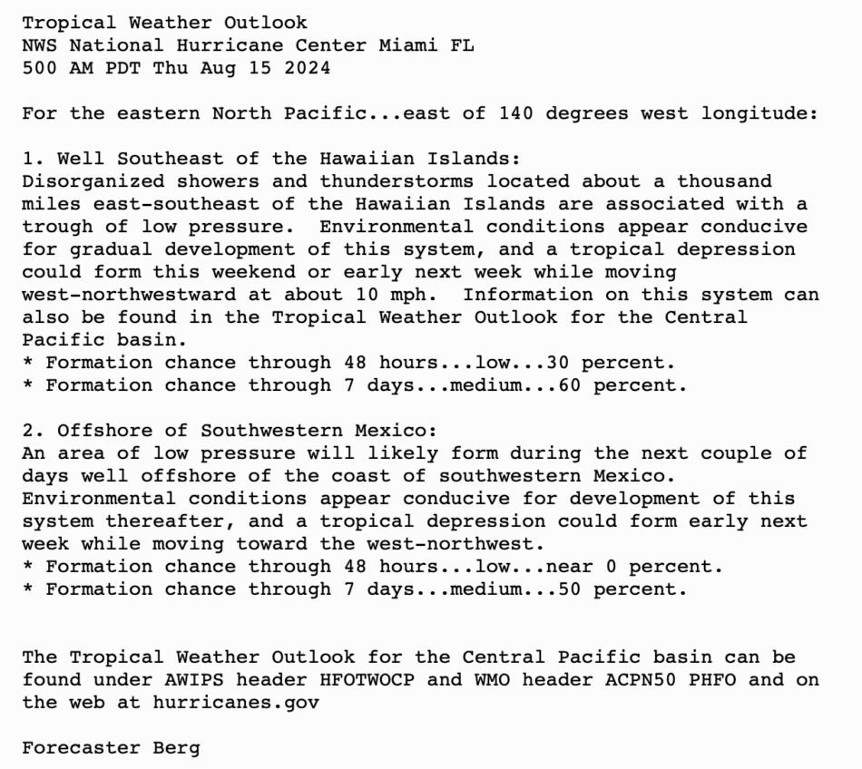 | Tropical Weather Outlook Text | Tropical Weather Discussion |