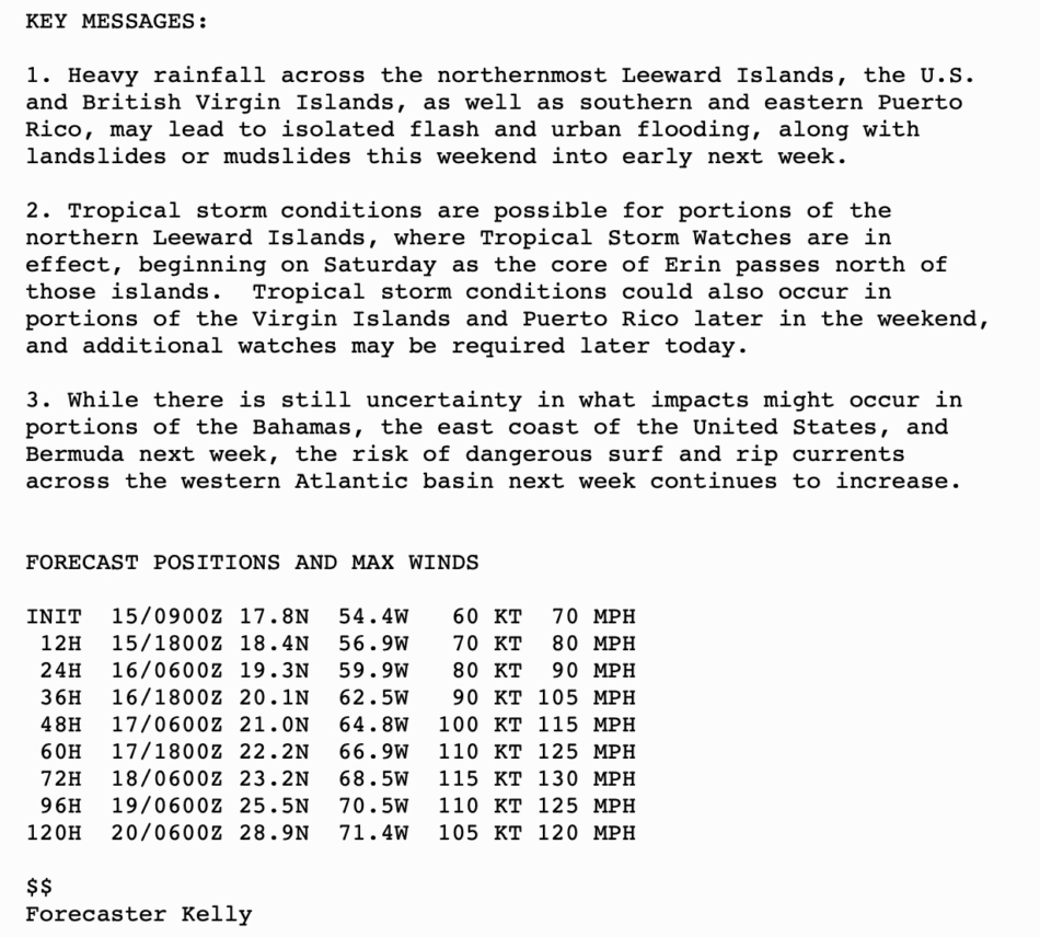 ERIN BECOMING BETTER ORGANIZED AND IS EXPECTED TO BECOME A HURRICANE LATER TODAY
