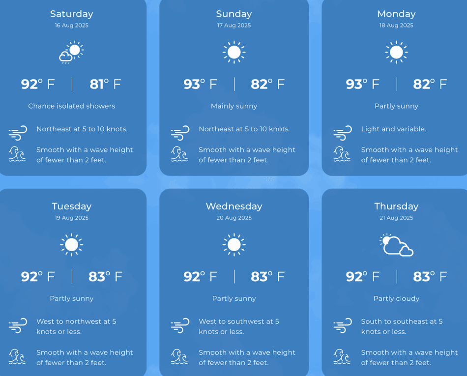 Sea: Smooth with a wave height of fewer than 2 feet.