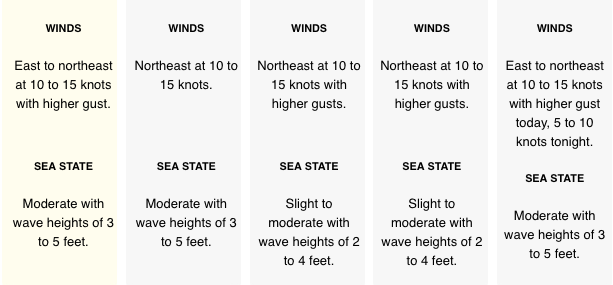 Moderate east to northeasterly winds and seas are expected over the Cayman area as the high pressure system builds over the eastern US.