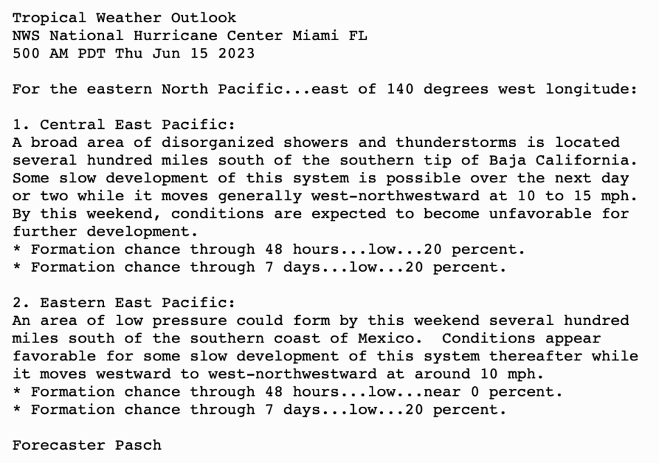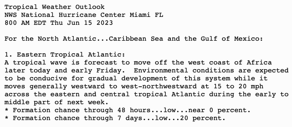 | Tropical Weather Outlook (en Español*) 800 AM EDT Thu Jun 15 2023 | |