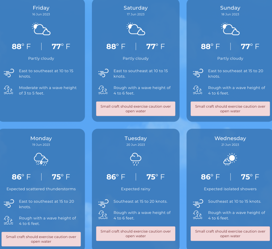 Temperatures: Yesterday – Low 76.9°F, High 88.8°F Today (Expected) – Low 77°F High 88°F