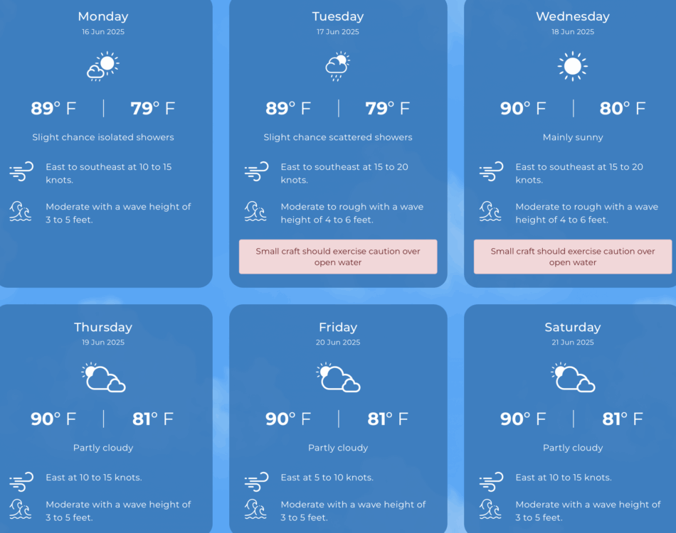 Expected temperatures: 81°F to 90°F. Yesterday: H 90.3°F L 81.2°F