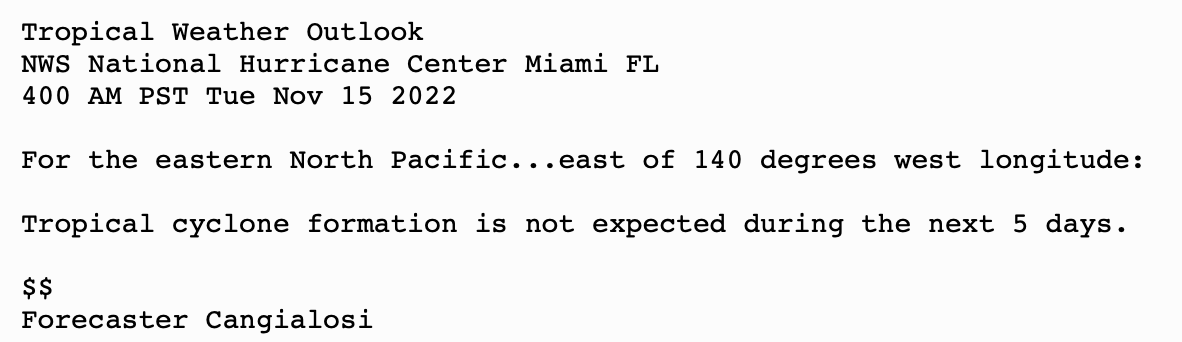 | Tropical Weather Outlook 500 AM PDT Tue Nov 15 2022 1005 UTC Tue Nov 15 2022 | |