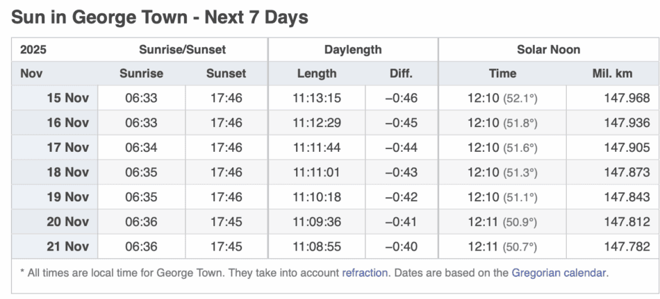 SUN IN GEORGE TOWN – NEXT 7 DAYS