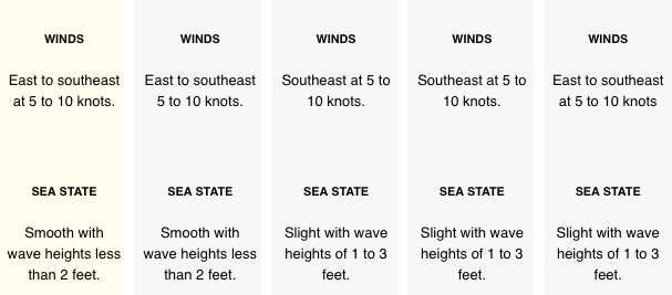 Winds: Today: ESE 10-15 mph Tonight: ENE 5-10 mph