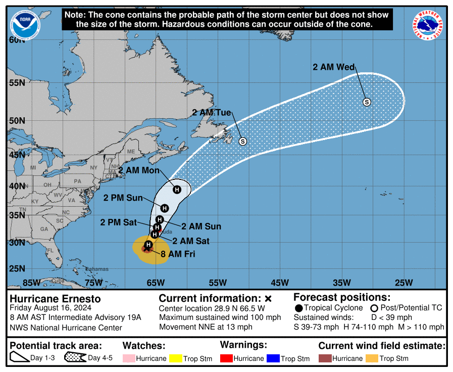 ERNESTO APPROACHING BERMUDA, WITH STRONG WINDS, DANGEROUS STORM SURGE, AND LIFE-THREATENING FLOODING STARTING LATER TODAY