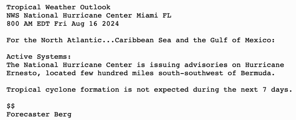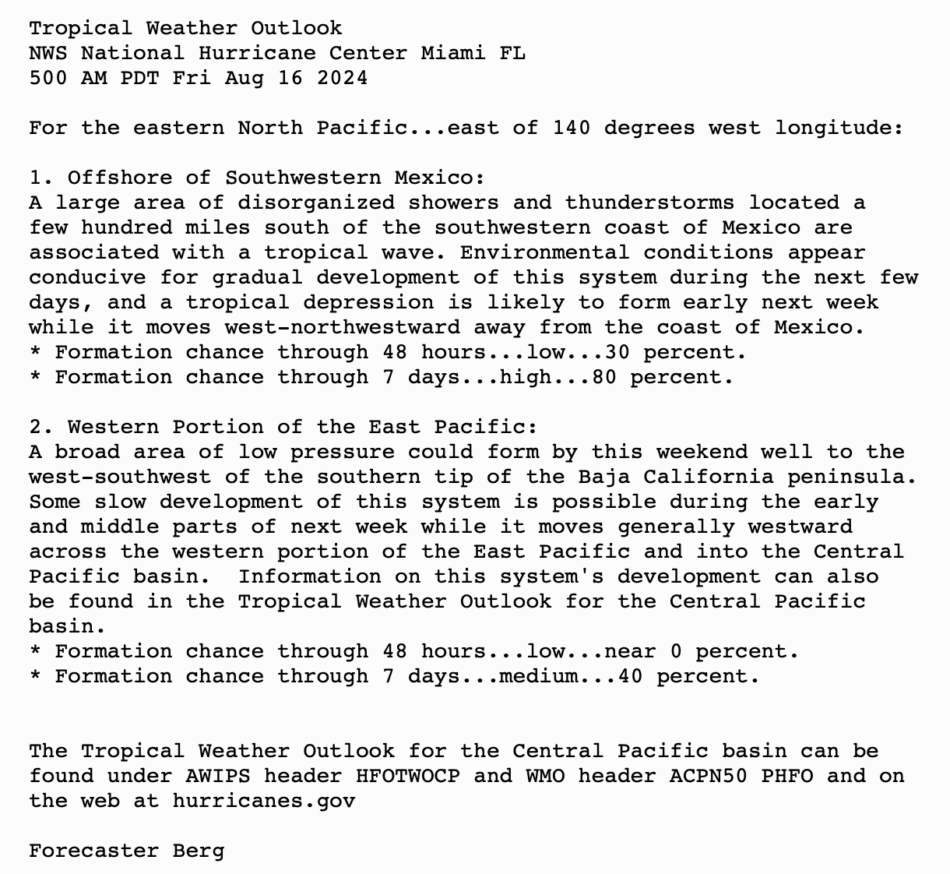 | Tropical Weather Outlook Text | Tropical Weather Discussion |